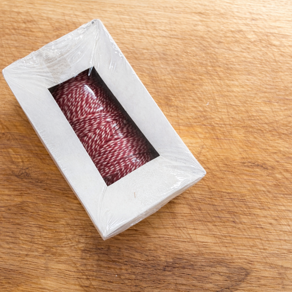 Det slidstærke hvid-røde garn tåler ophængning til tørring og modning uden risiko for brud. Leveres på praktisk spole med ca. 55 meter